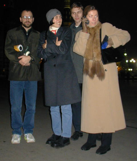 - Pushkin's Square in Moscow: Me,Kate,My Dad,Xiusha,Kondratych,Zhenechka,Vika and again and Me, Zhenechka and Kondratych and Me,Zhenechka,Kondratych and Pushkin and Me and Kate